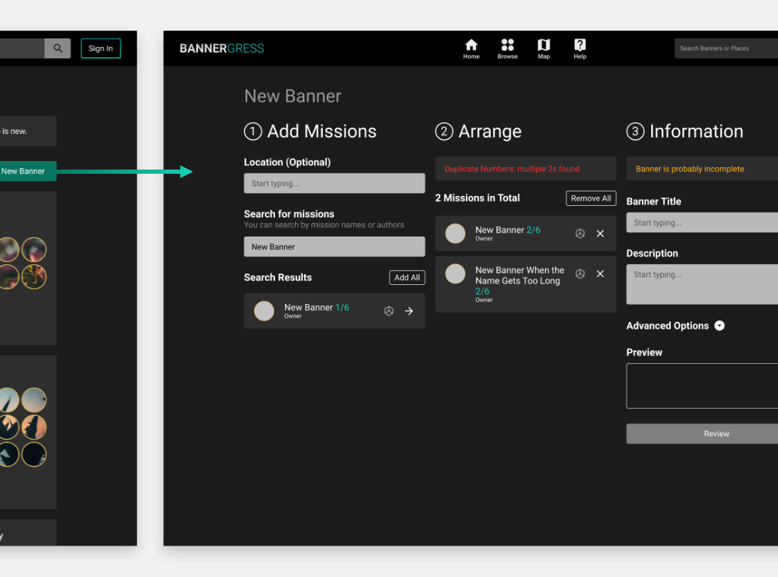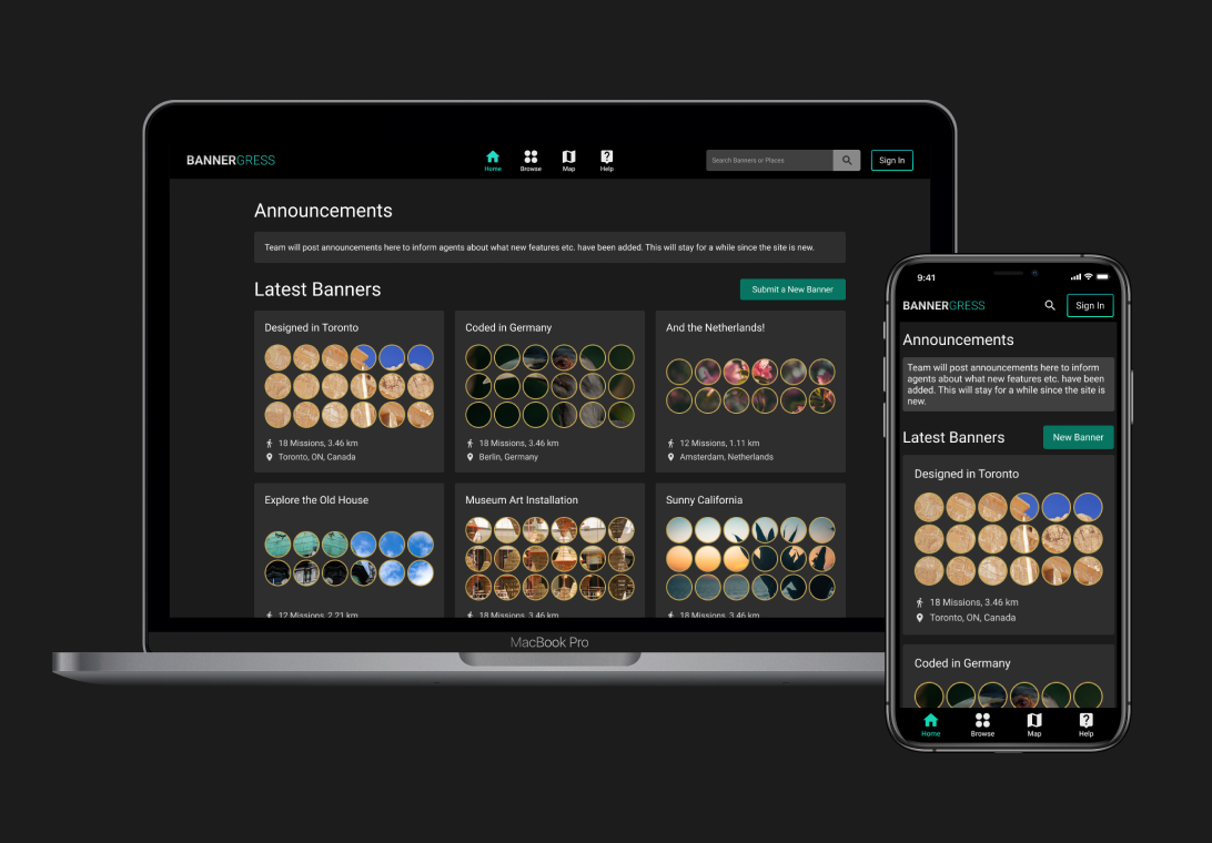 IngressMosaik was a website that collects banners around the world through user-generated content. Used to be the go-to place to browse mission banners, it abruptly shut down in 2021. With the goal of creating a better version of IngressMosaik, a small group of players started the Bannergress project and I joined the team as the UI&UX designer.